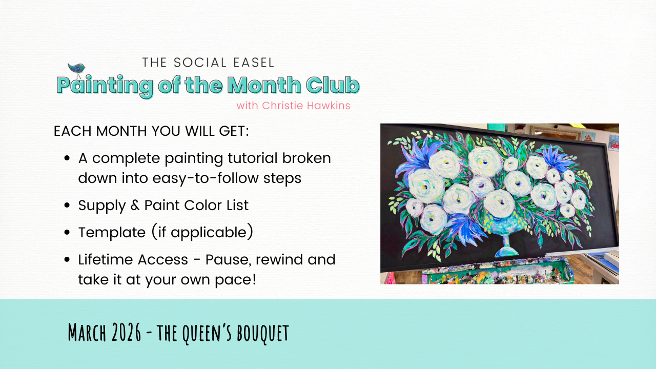 - Each month in the club, I hand-pick what painting I want to share with you! These are the most popular tutorials from my Tribe membership and this club is your ONLY opportunity to get to paint one of these with me each month!